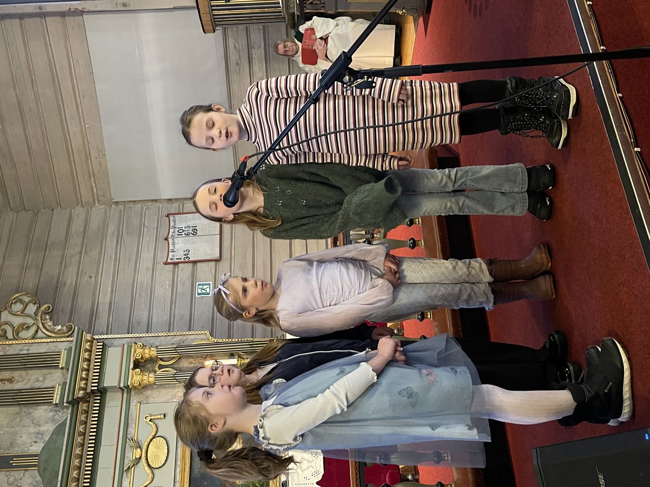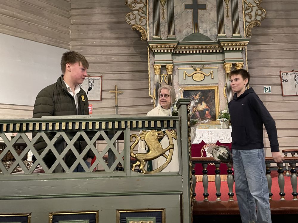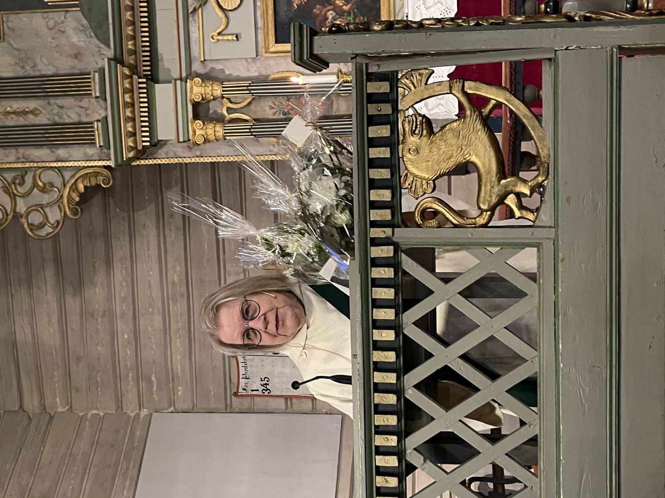 Glimt fra gudstjenesten: Birgith fikk blomster fra både konfirmantene og Coral barnekor