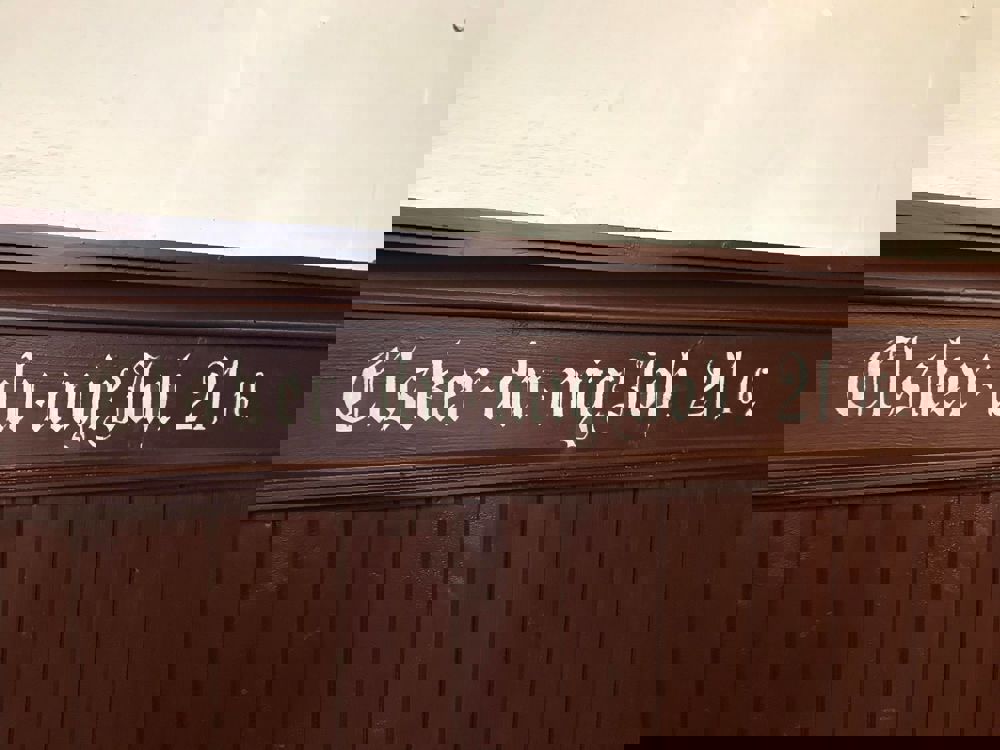 Klokkerstolen er utstyrt med akantusranker og utført av Mons Løvfall i 1947. Gave fra Kristiane og Jacob Jacobsen.