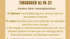 14.2.2025Mandag 24/2 kl. 19:00 på Vestre Aker menighetshus får vi besøk av Morten Jentoft.