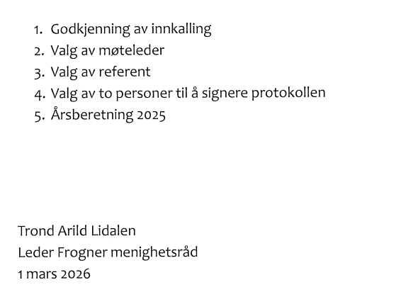 Innkalling til menighetsmøte Frogner menighet.