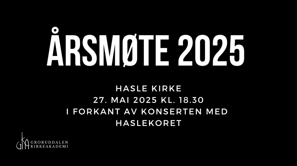 20.5.2025Det er årsmøte i Groruddalen kirkeakademi tirsdag 27. mai 2025 kl. 18.30 i Hasle kirke