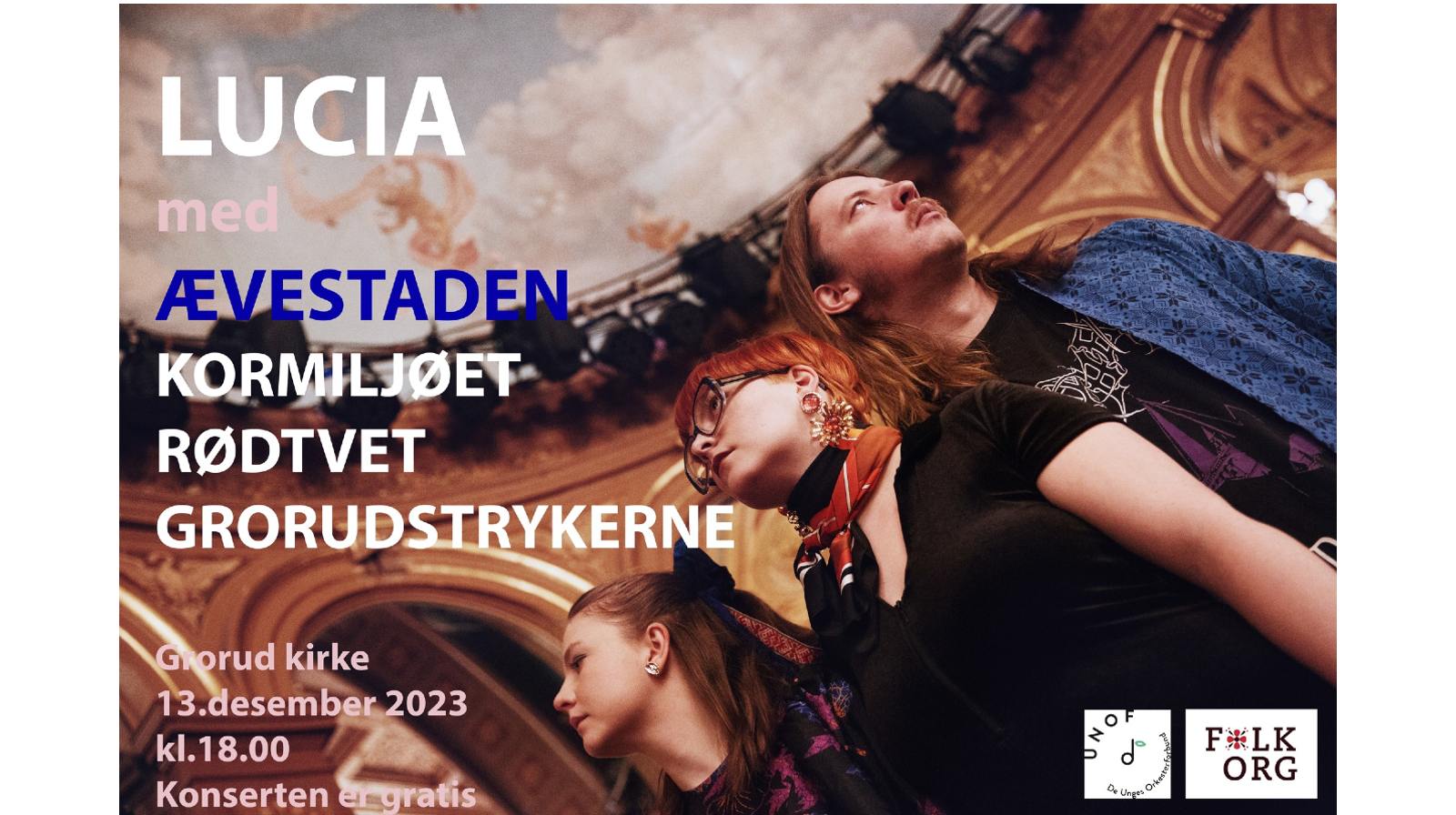 12.12.2023Velkommen til Luciakonsert med Ævestaden, Kormiljøet Rødtvet og Grorudstrykerne.