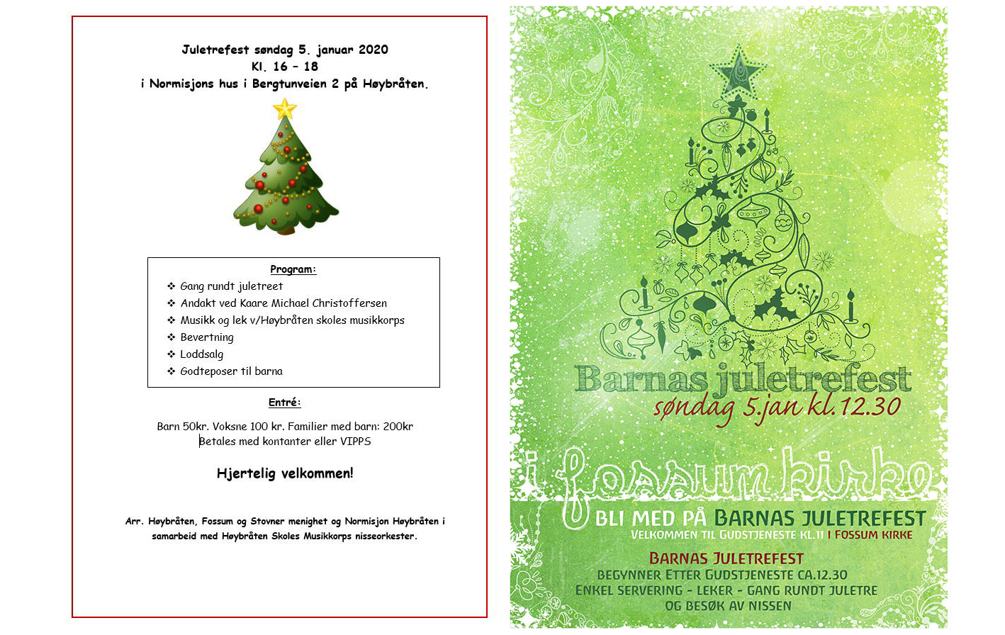 19.12.2018Velkommen til Juletrefest 5.januar i Fossum kirke og i Normisjons hus i Bergtunveien 2 på Høybråten.