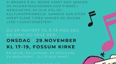 22.11.2023Velkommen til musikk-delekveld onsdag 29.nov. i Fossum kirke kl.17-19.