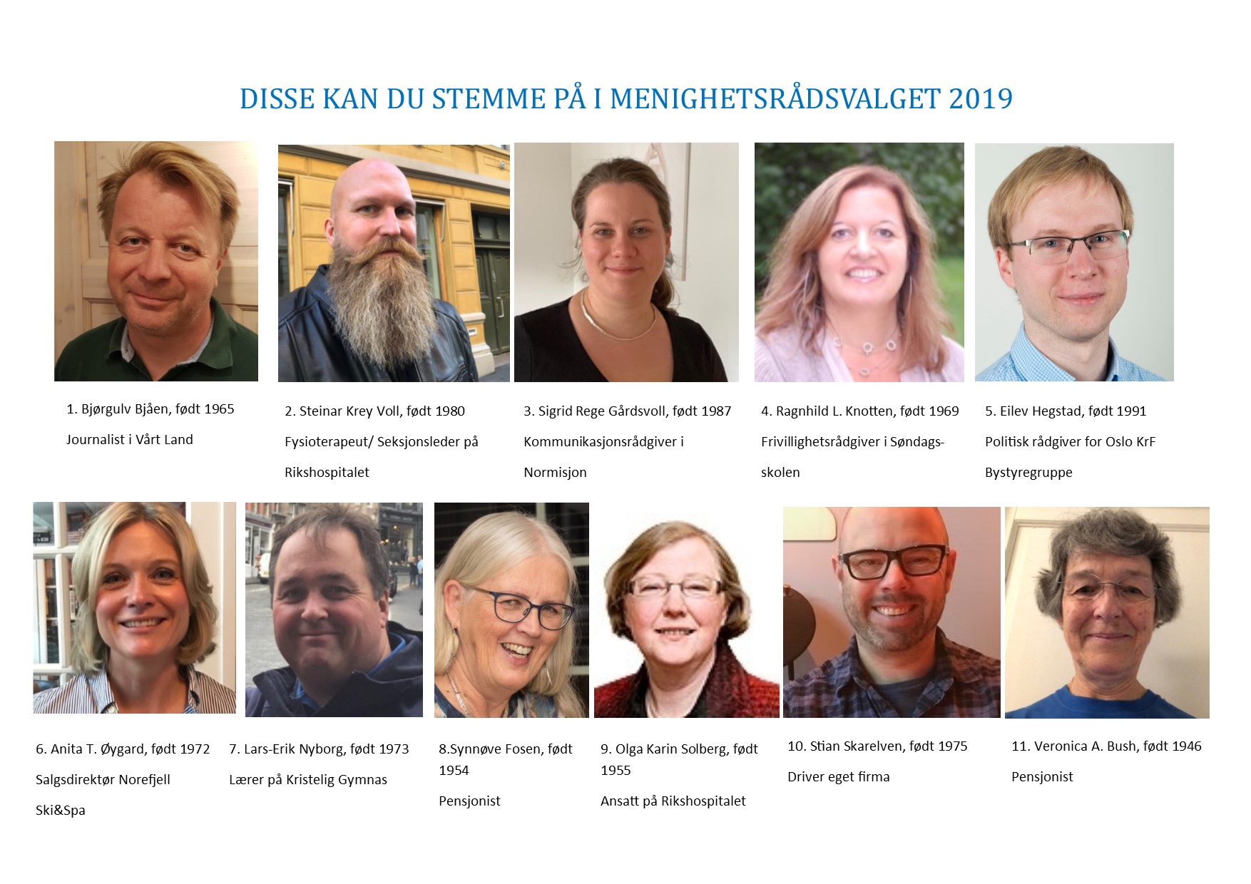 20.8.2019Her kan du lese litt mer om de 11 som stiller til valg til nytt menighetsråd