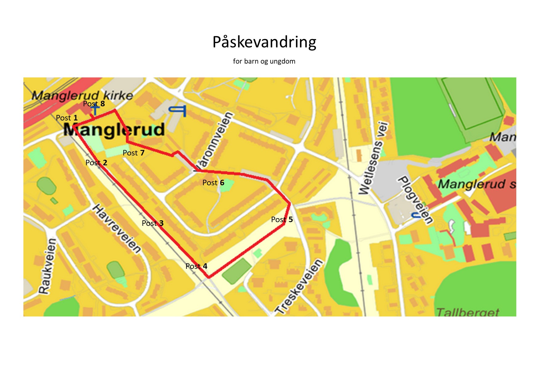Kart for påskevandringen finnes på første post eller i elektronisk versjon under «Dokumenter» nederst på denne siden.