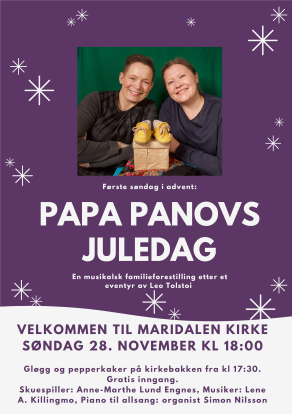 24.11.2021Familieforestillingen "Papa Panovs juledag" fremføres i Maridalen kirke