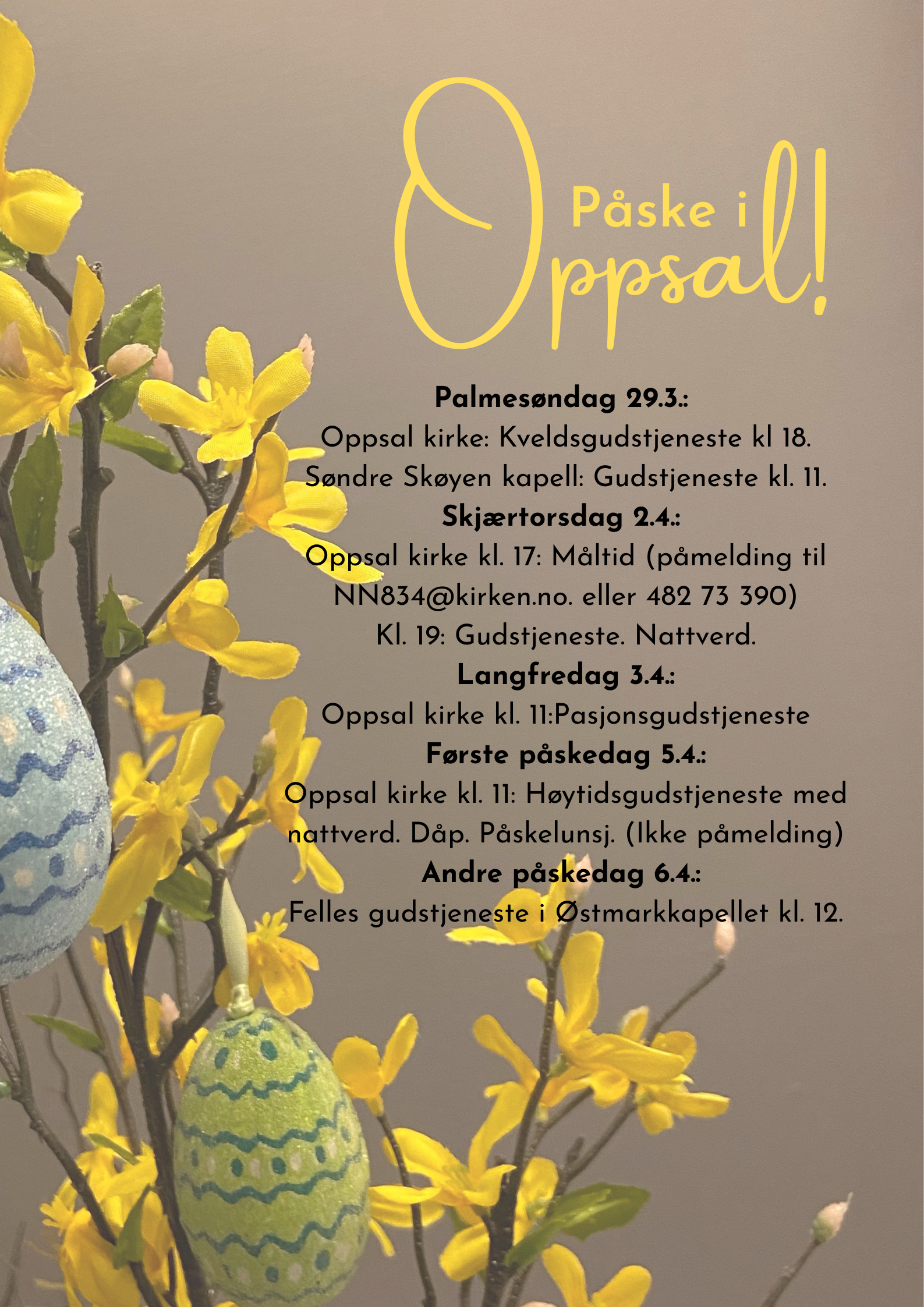 Hjertelig velkommen til gudstjenester og samlinger i påsken! Her finner du en oversikt over hva som skjer.