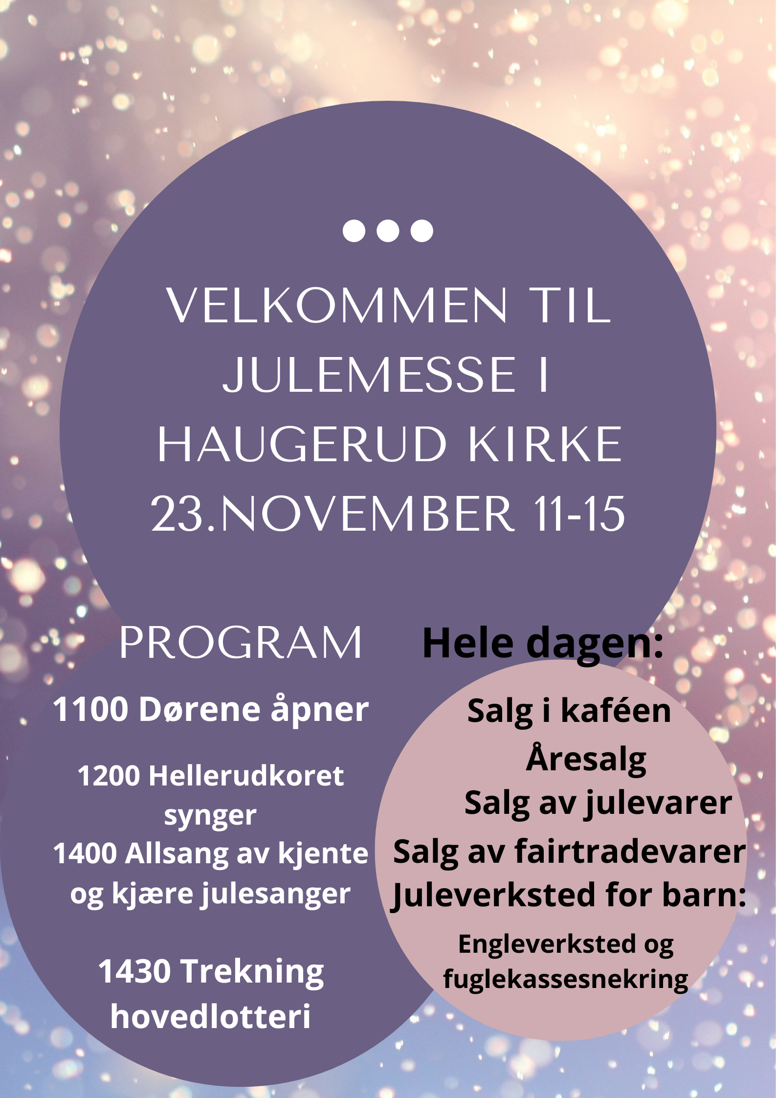 8.11.2024Velkommen til den årlige julemessa i Haugerud kirke lørdag 23.november
