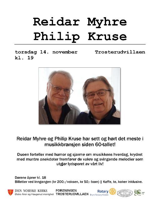 14.11.2024Torsdag 14.november kommer Reidar Myhre og Philip Kruse til Trosterudvillaen