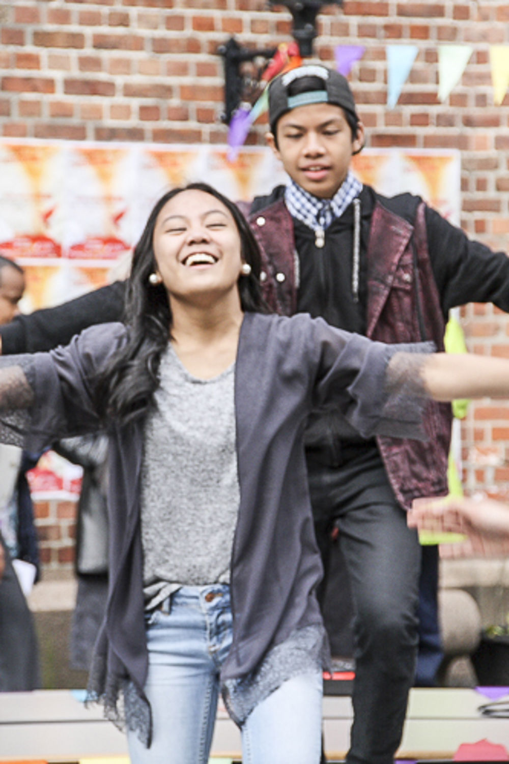 Sang og lek med barna. Matservering/salg.