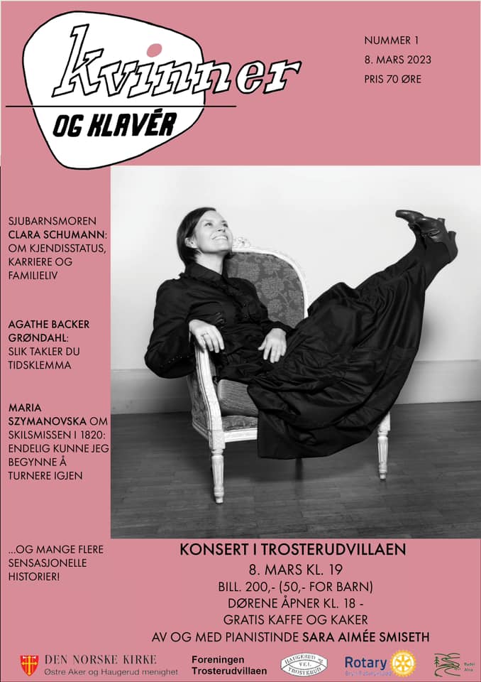 3.3.20238.mars klokka 19.00 spiller pianistinde Sara Aimée Smiseth konsert i Trosterudvillaen