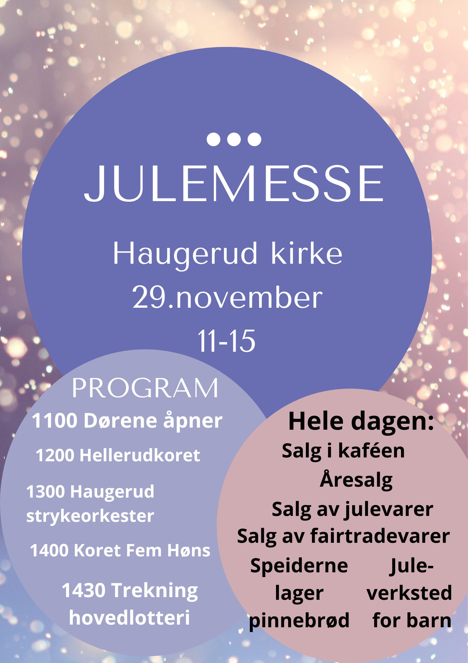 Velkommen til tradisjonsrik julemesse i Haugerud kirke lørdag 29.november fra 11-15.