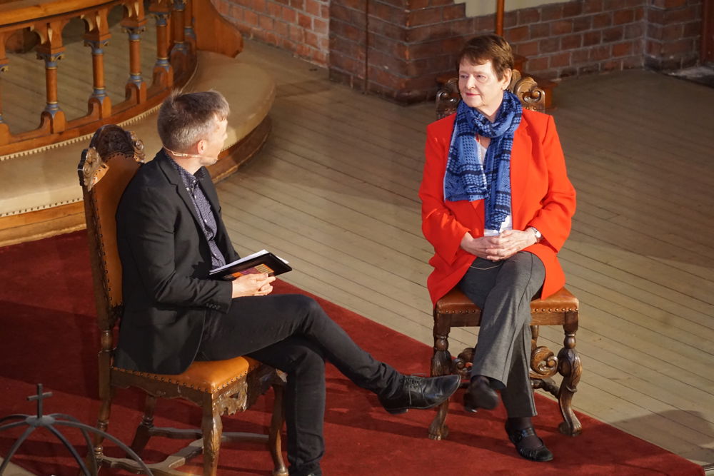 Stålsett minnet om at mange katedraler er bygget av arbeidere som aldri fikk se det ferdige resultatet og menneskers behov for å stå i en større sammenheng. Gro responderte med å snakke om det ansvaret vi har for fremtidige generasjoner. –Folk ble ikke klar over miljøutfordringene før for 40-50 år siden. Mye har skjedd, og mye gjenstår for å redde kloden, eller det kirken kaller skaperverket, sa hun.