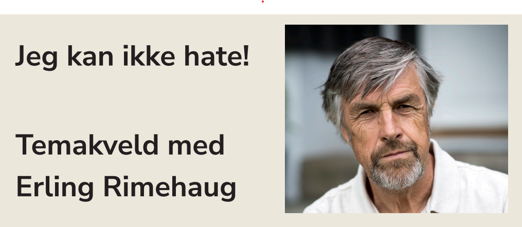"Jeg kan ikke hate" Temakveld med Erling Rimehaug i Tonsen kirke