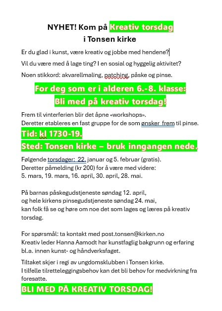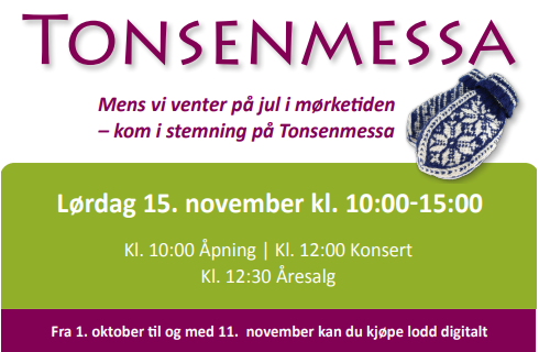 25.9.2025Lørdag 15. november kl. 10:00 - 15:00 er det klart for Tonsenmessa i Tonsen kirke!