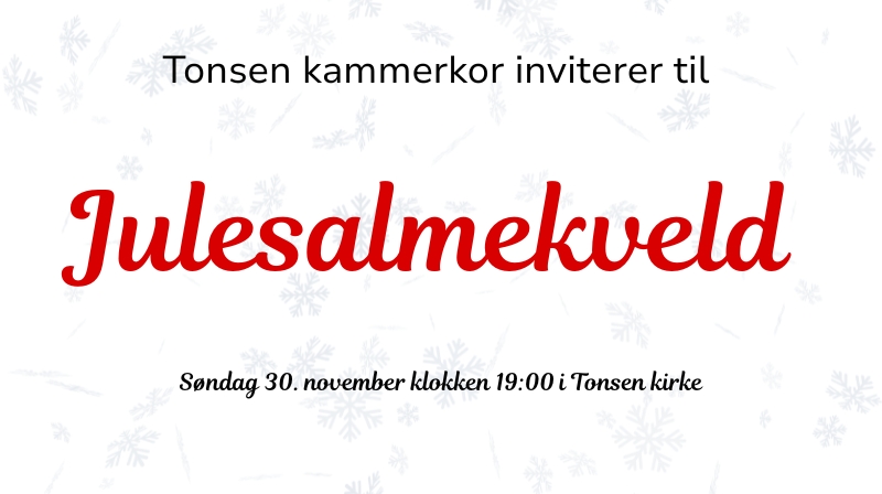 12.11.202530. november klokken 19:00 inviterer Tonsen kammerkor til julesalmekveld i Tonsen kirke!
