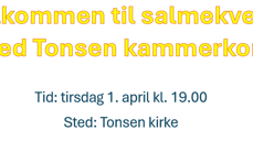28.1.2025Velkommen til salmekveld i Tonsen kirke, tirsdag 04. februar klokken 19:00!