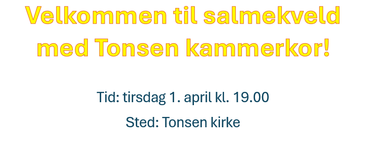 28.1.2025Velkommen til salmekveld i Tonsen kirke, tirsdag 04. februar klokken 19:00!