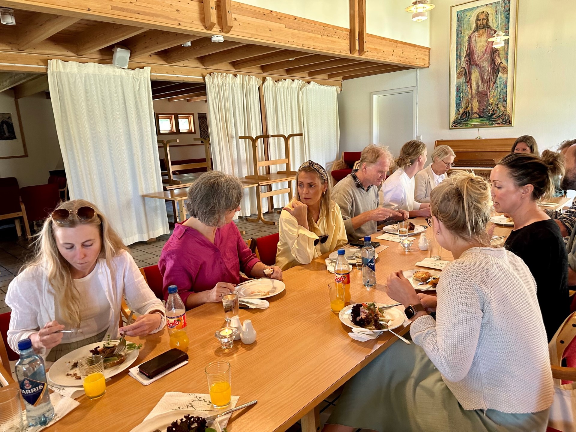 Uranienborg sin stab tok så bena fatt og gikk «Kyststien» fra Presteskjær i syd til Hellvik i nord, underveis fikk vi et meget godt foredrag av lokalhistoriker Stein Turtumøygard om Nesodden, Hovedøya og munkenes tilstedeværelse på Nesodden, men også om svenskene som kom over isen for å ta Akershus festning for noen hundre år siden. Videre hadde vi en rast hjemme hos Stein hvor det var anledning til å ta seg et bad i sjøen før vi tok bussen til Nesoddtangen og restaurant Signalen sjøbad der Dag Tjersland tok i mot oss og fortalte om sine visjoner i og rundt restauranten. Etter middag vendte en sliten gjeng tilbake til Oslo med båten. Alt i alt en veldig vellykket dag der erfaringsutveksling, kollegialt samhold, folkehelseinnslag og lokalhistorikk sto i sentrum.