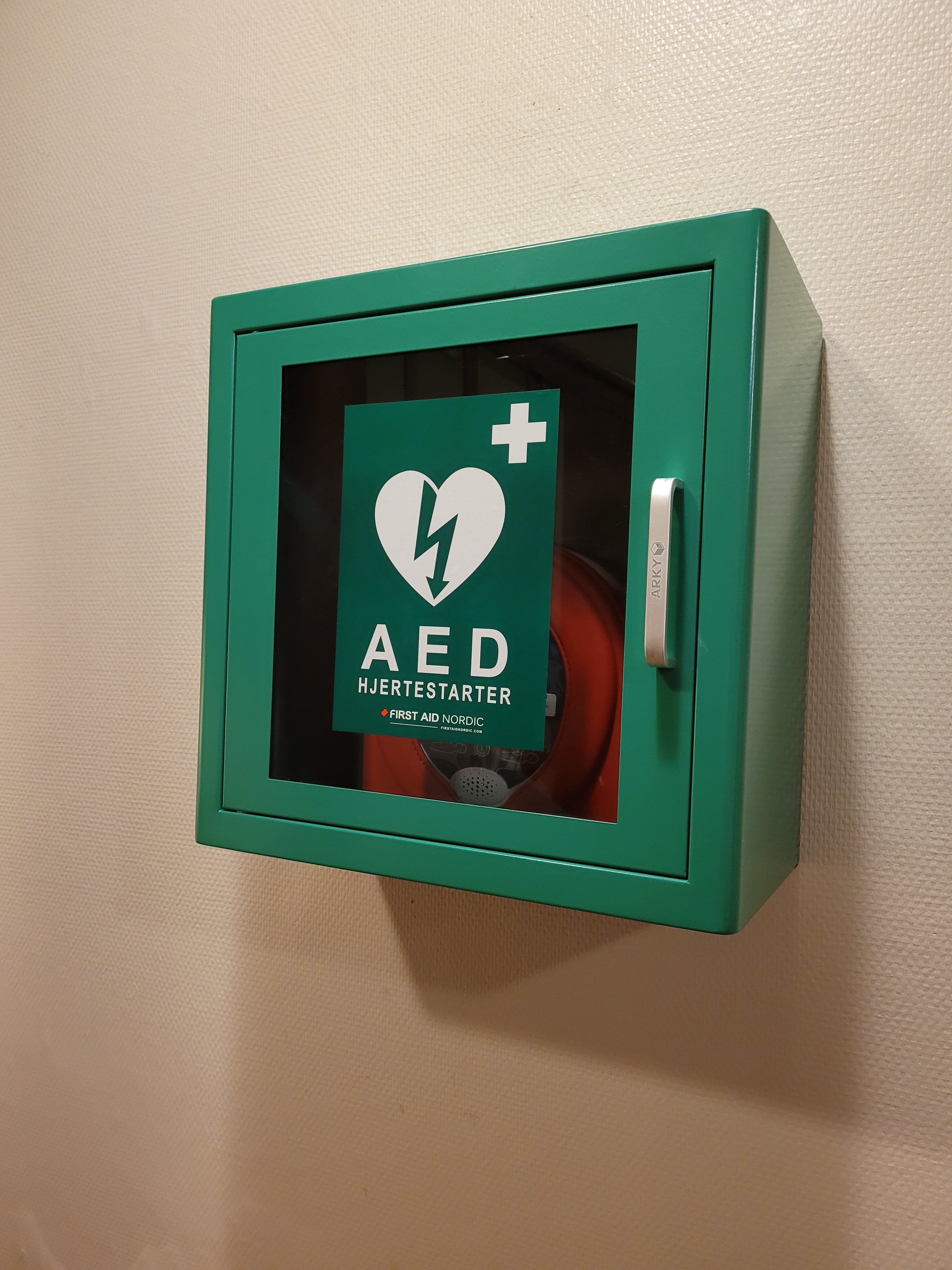 Hjertestarter på plass i Herdahlsalen