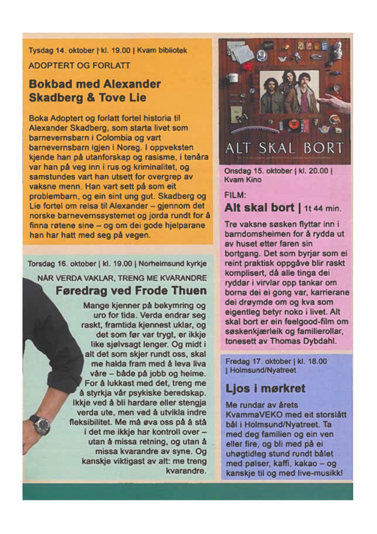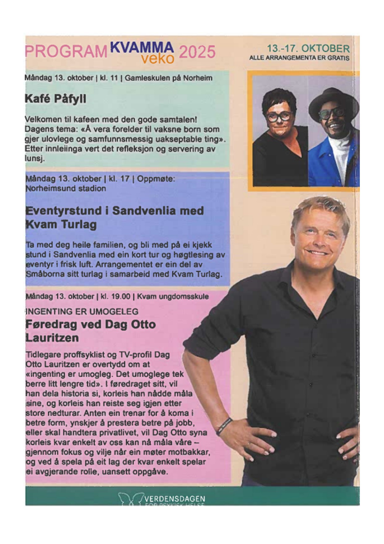 Arrangert av Kvammaveko/ Verdsdagen for psykisk helse i samarbeid med Vikøy sokn