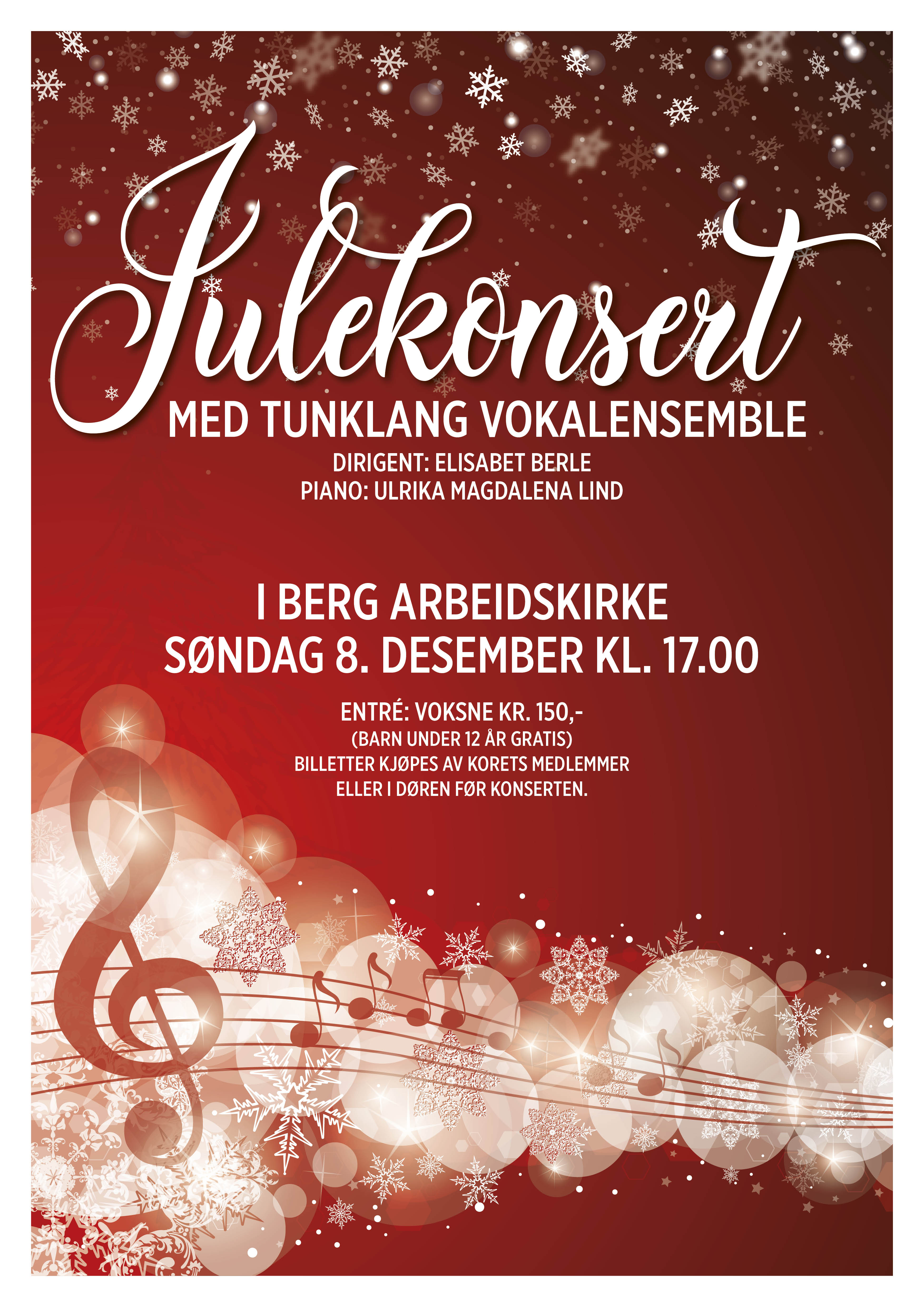 Tunklang vil under ledelse av dirigent Elisabet Berle, fremføre en blanding av tradisjonelle og nyere julesanger i Berg arbeidskirke 8. desember.