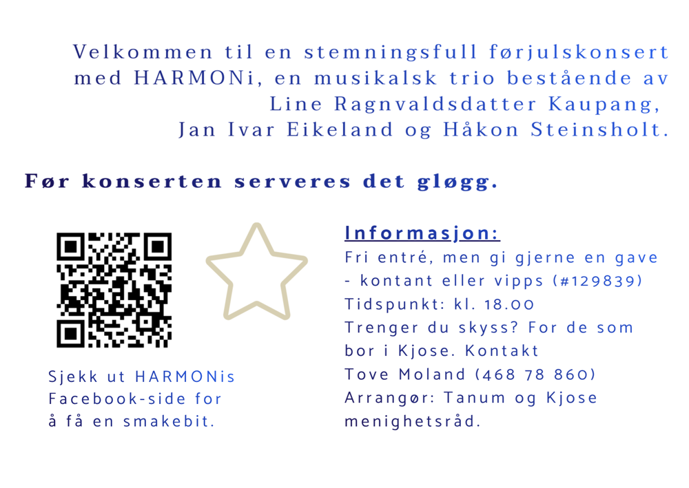 Velkommen til en stemningsfull førjulskonsert med HARMONi, i anledning Kjose kirkes 175-årsjubileum kl. 18:00.