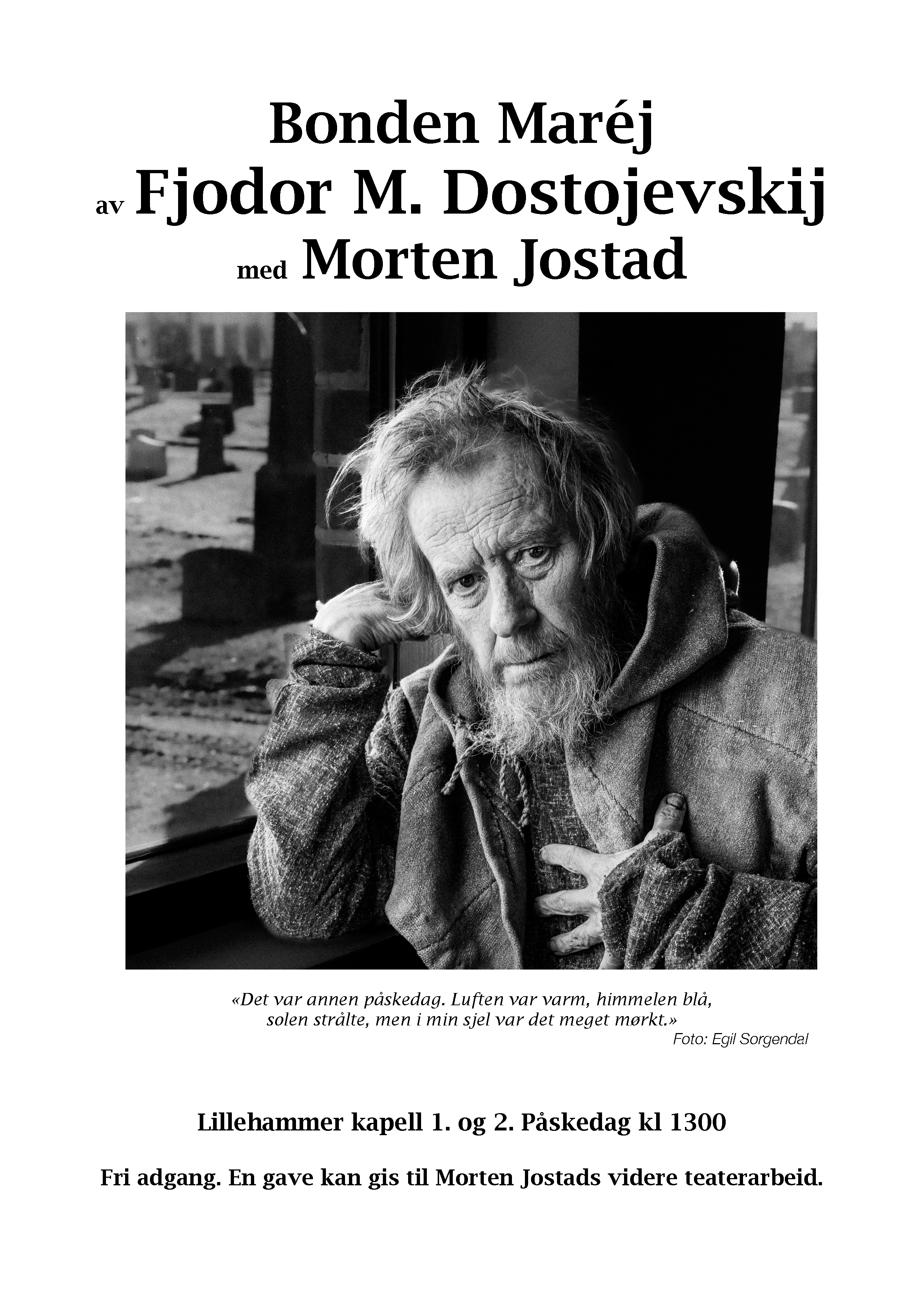 Lillehammer kapell inviterer til en stemningsfull teateropplevelse i påsken når Morten Jostad fremfører «Bonden Maréj», en sterk og gripende tekst av Fjodor M. Dostojevskij.