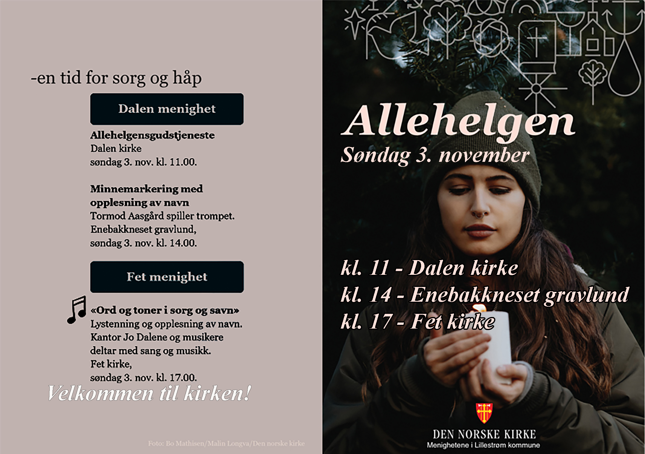 30.10.2024Velkommen til allehelgenen - Dalen kl.11.00 - Enebakkneset kl.14.00 - Fet kl.17.00