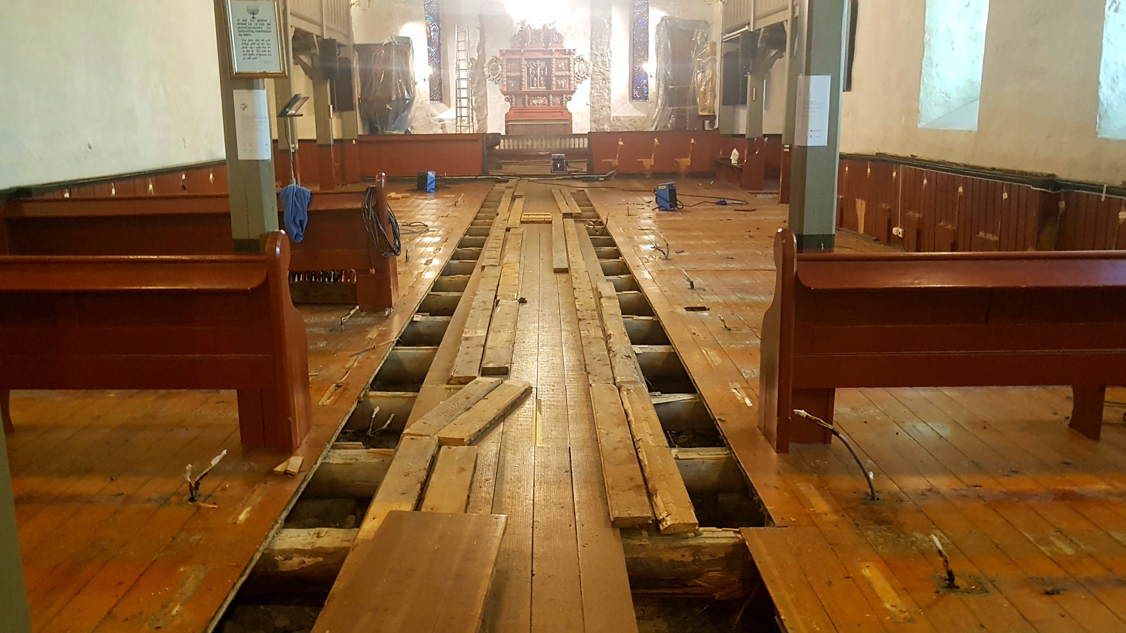 27.10.2020Skedsmo kirke rehabiliteres innvendig i disse dager. Målet er å bli ferdig til 1. søndag i advent.