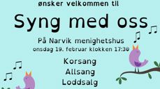 14.2.2025Velkommet til Syng med oss på Narvik menighetshus onsdag 19. februar klokken 17:30.