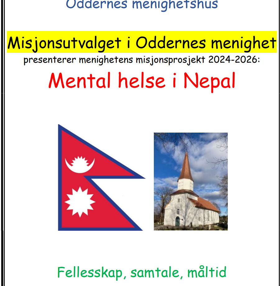 Fredag 10. oktober kl. 19.30 er menighetens misjonsprosjekt "Mental helse i Nepal" tema.