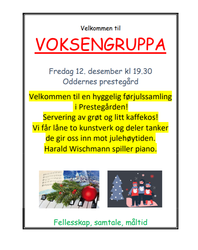 Velkommen til førjulssamling med Voksengruppa fredag 12. desember kl. 19.30