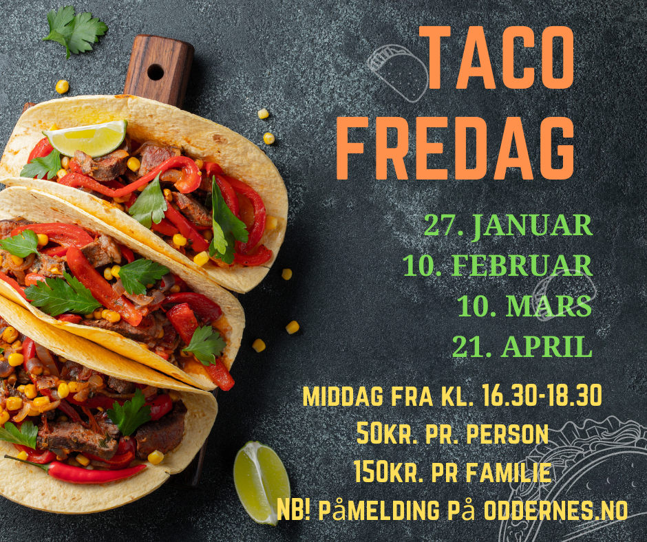 Meld deg på neste TACOFREDAG i menigheten fredag 10.mars kl. 16.30!