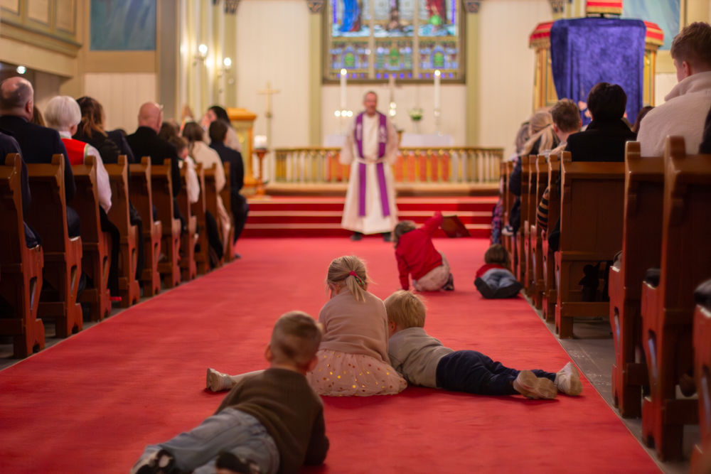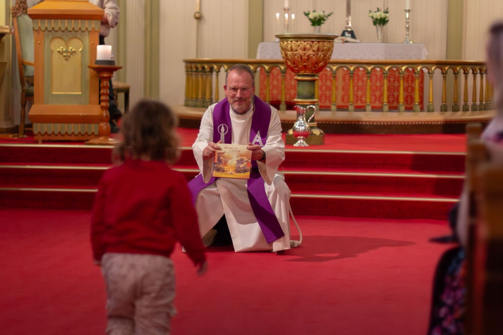 Mot slutten av gudstenesta fekk dei barna som ville, komme fram til presten og vere med på å lyse velsigninga med opne armar.