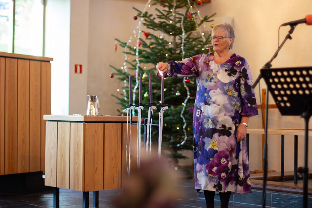 Forsamlinga deltok òg i allsang av kjende adventssalmar, og det første lyset i adventsstaken vart tent.
