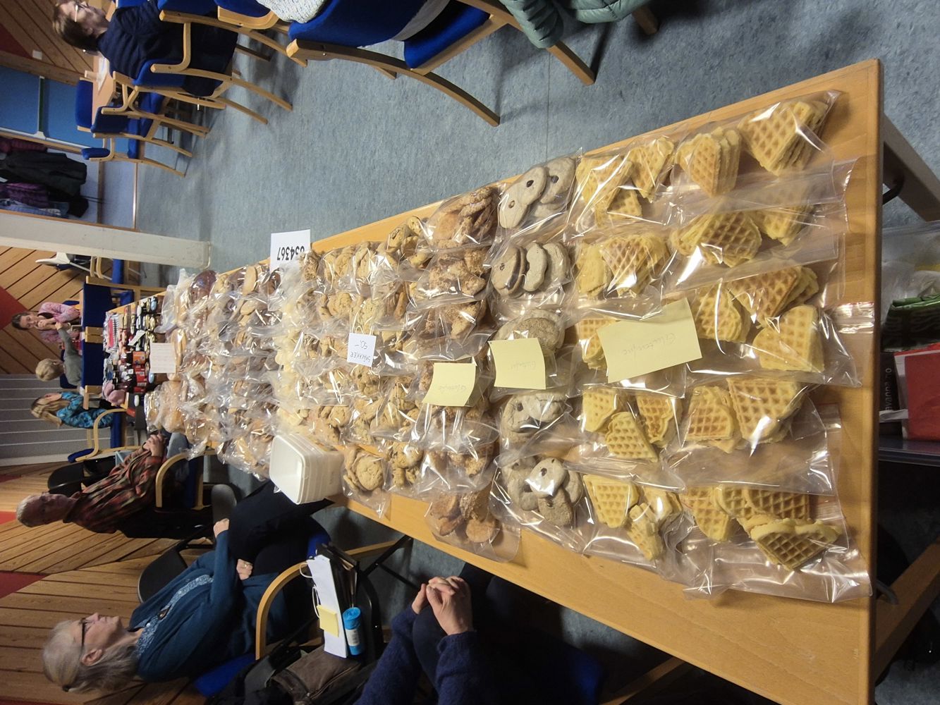 Stor takk til dykk som møtte fram og kjøpte lodd, kaker og graut, og gjorde dette til ein fest. Takk òg til dykk som tok lodd i bøkene, men ikkje kunne koma på festen. Aller størst takk til komiteen. Det ligg månader med førebuing, administrering og arbeid i forkant av julemessa. Det kom inn over 100.000 kroner, som går til kyrkjelydsarbeid av ymse slag.»
