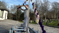 Eit kunstverk får ny plass: veven i Kausland kyrkja er flytta