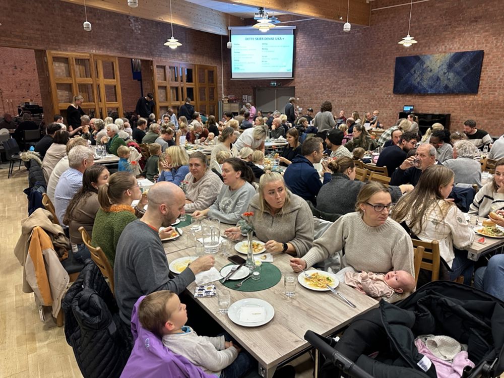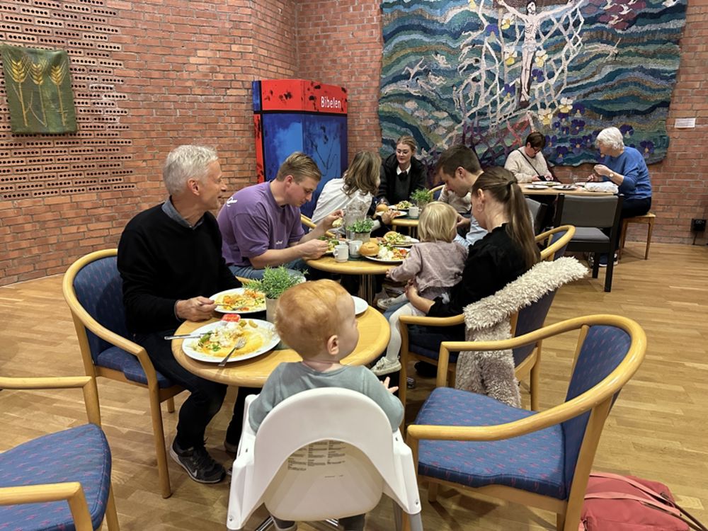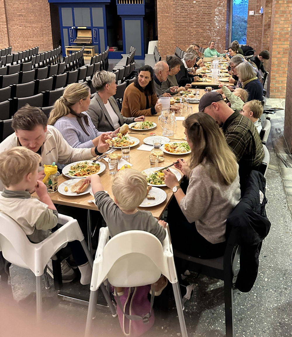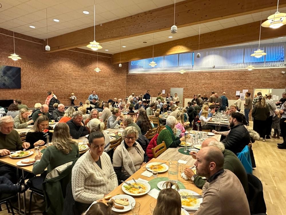 Kirketorget i Søm kirke rommer ganske mange. Men i dag måtte det dekkes både i kirkestua og i kirkesalen.