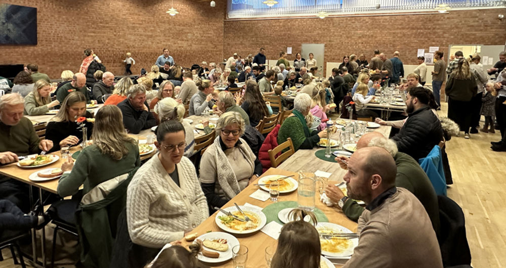 Kirketorget i Søm kirke rommer ganske mange. Men noen ganger må det dekkes både i kirkestua og i kirkesalen.