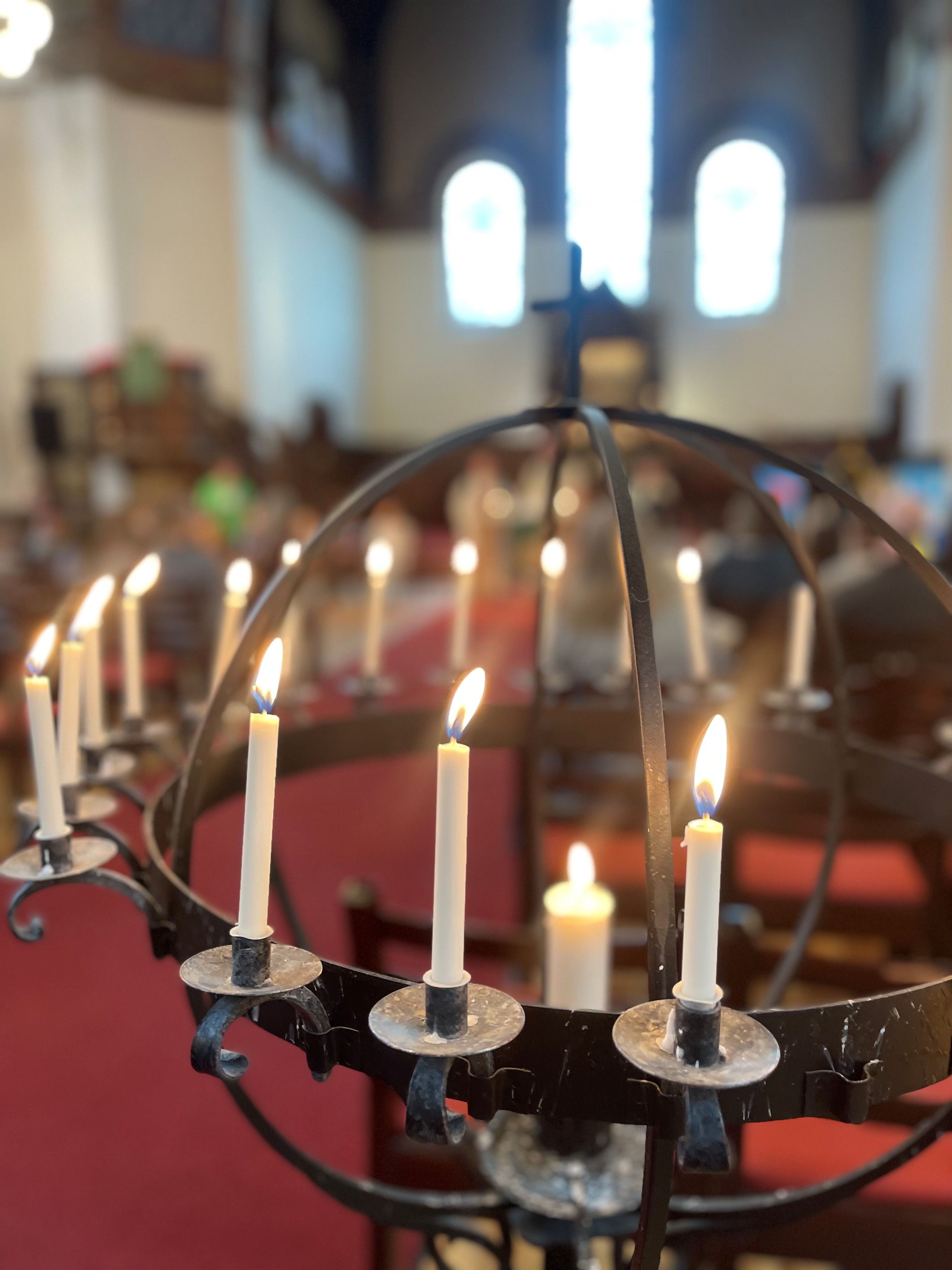 Marie tenner lys under gudstjenesten.