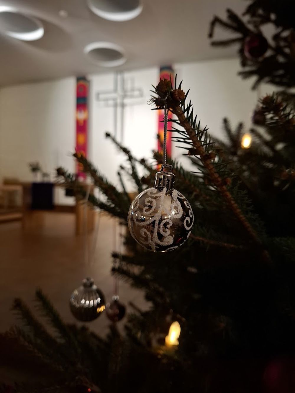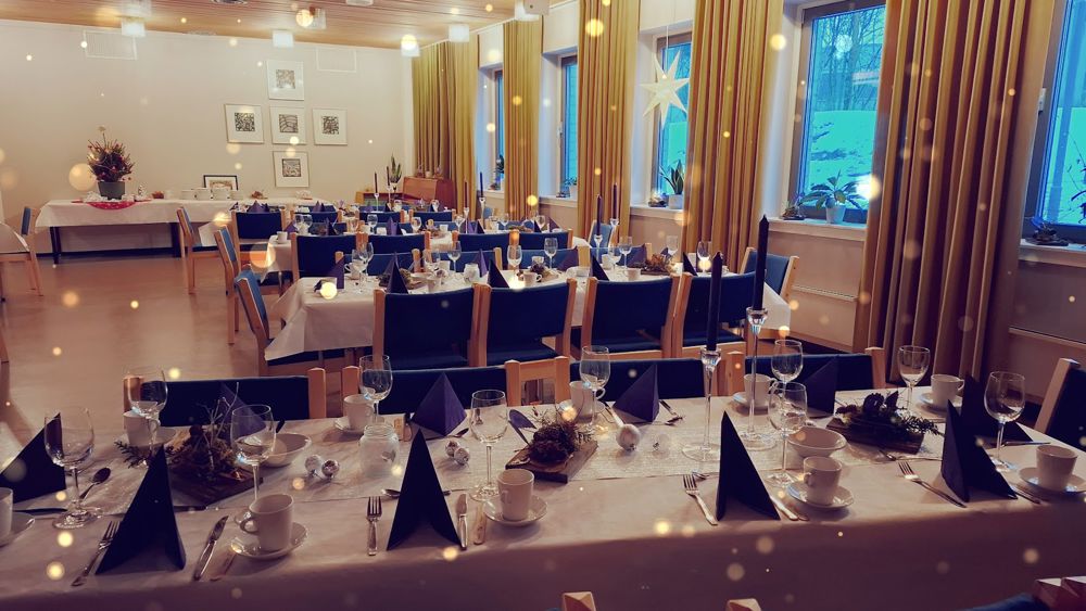 Kirka er pyntet til fest med hvite duker, blomster og levende lys på bordene. Det er julestemning med lukt av ribbe og synet av fristende kaker. Instrumenter stemmes, og stemmer varmes opp. Det er lørdag i advent og det er klart for julemiddag.