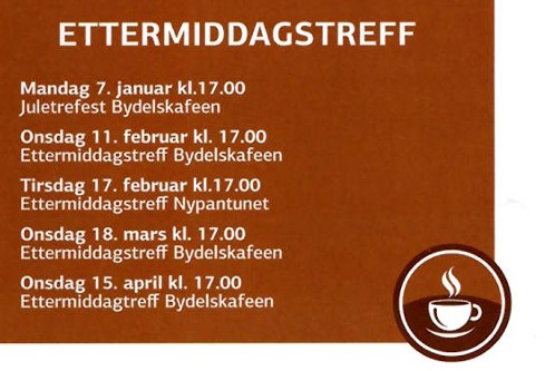 Her er vårens oversikt over "Ettermiddagstreff" på Byneset og Leinstrand