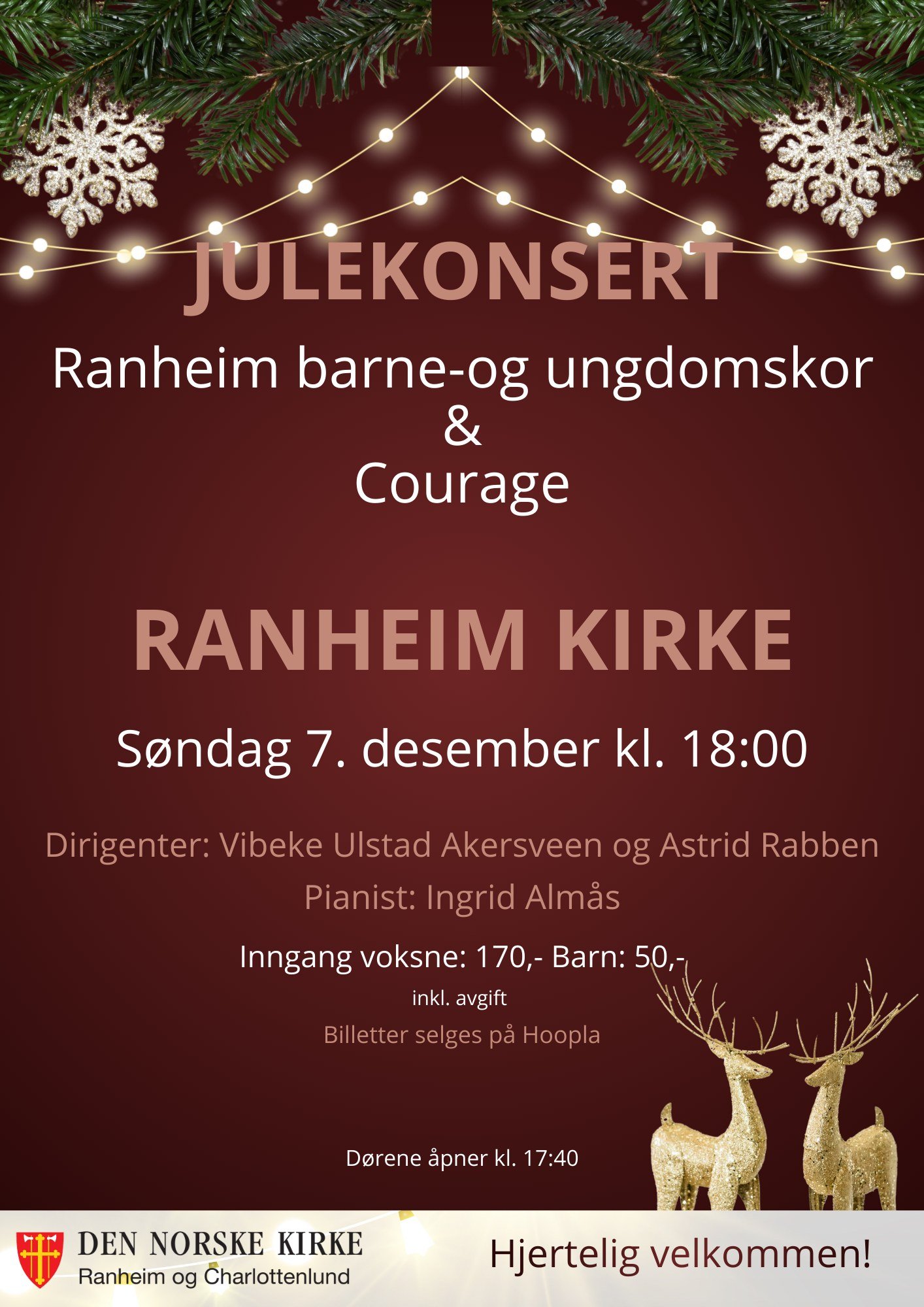 Etter fjorårets suksess inviteres det igjen til julekonsert i Ranheim kirke med Ranheim barne- og ungdomskor og damekoret Courage. Her kan det virkelig garanteres julestemning og stemningsfull sang fra de to korene.