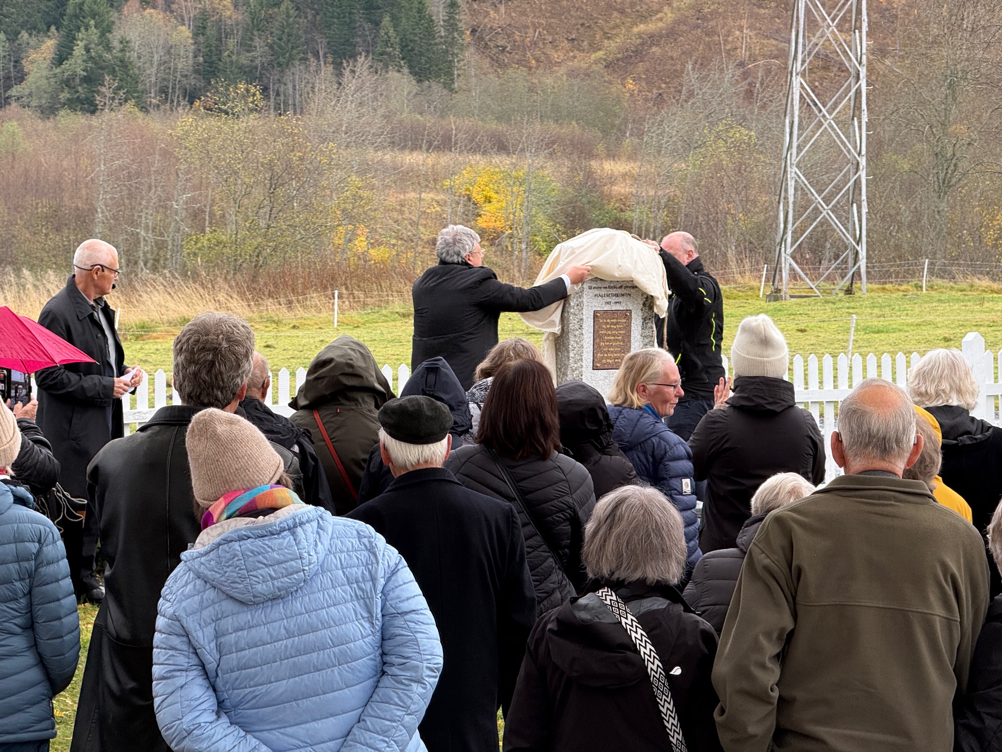 Etter gudstjenesten samlet mange seg ute på kirkegården for selve avdukingen. Kirkeverge Kjell Inge Nordgård fremhevet hvordan ledelsen ved Hallsetheimen i alle år kjempet for nødvendige ressurser for å sikre verdige liv for beboerne. Minnesteinen fungerer både som et gravminne og som et symbol på kampen for rettigheter og utviklingsmuligheter for personer med psykisk utviklingshemming.