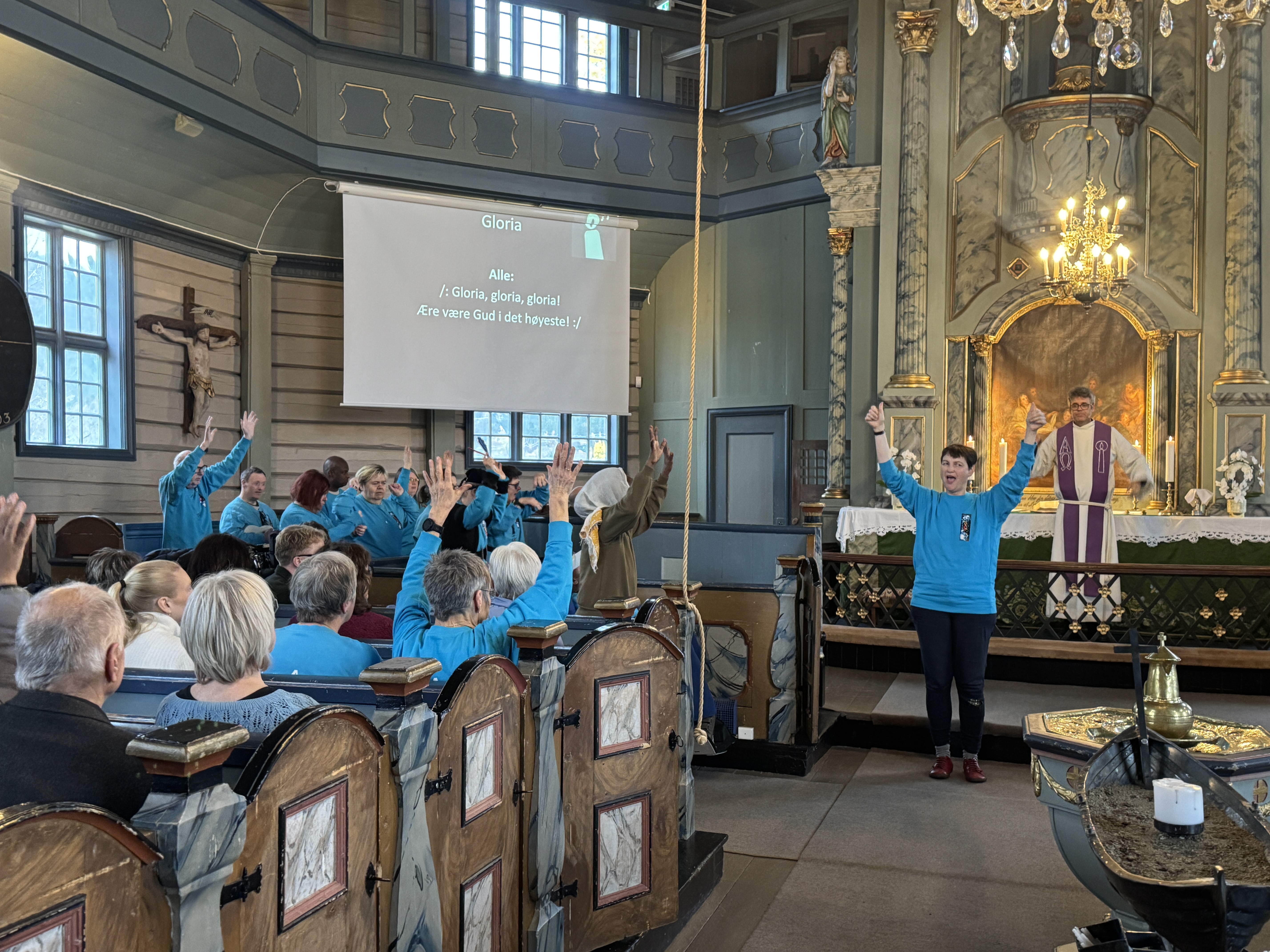 Koret Kor Artig, bestående av personer med nedsatt funksjonsevne, bidro med sangglede og sterke inntrykk under gudstjenesten, og fortsatte med musikalske innslag under kirkekaffen senere på formiddagen.