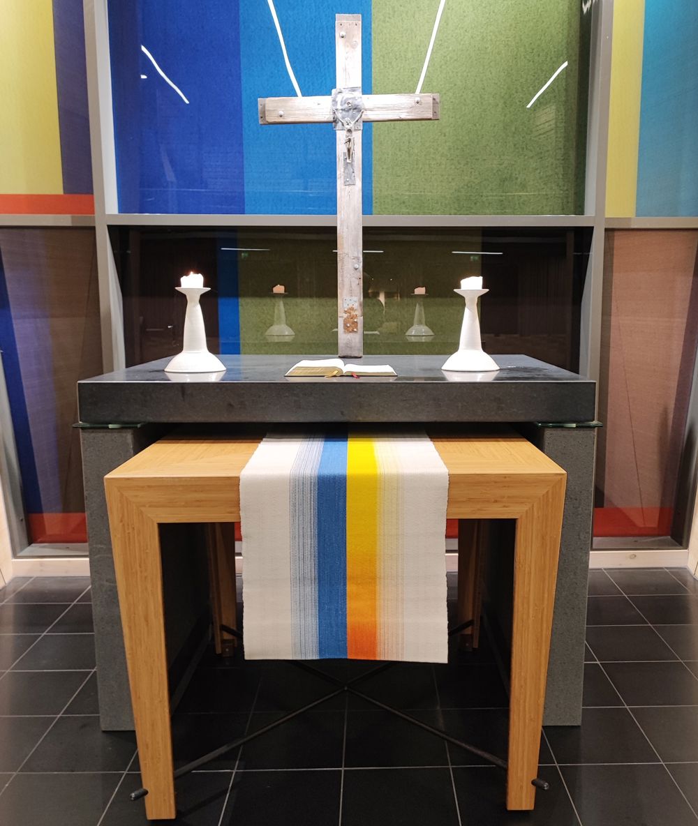 Tekstilene er nå ferdige, og vi ønsker å ta dem i bruk. Dette vil vi markere ved Kveldsmessen i Son kulturkirke onsdag 19. november kl. 19. Da vil kunstner Rigmor Bové være til stede og fortelle om arbeidet med de nye tekstilene.