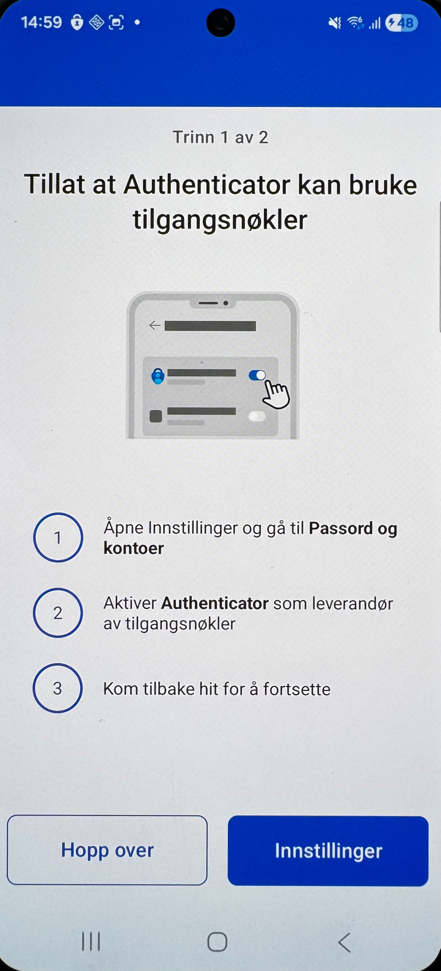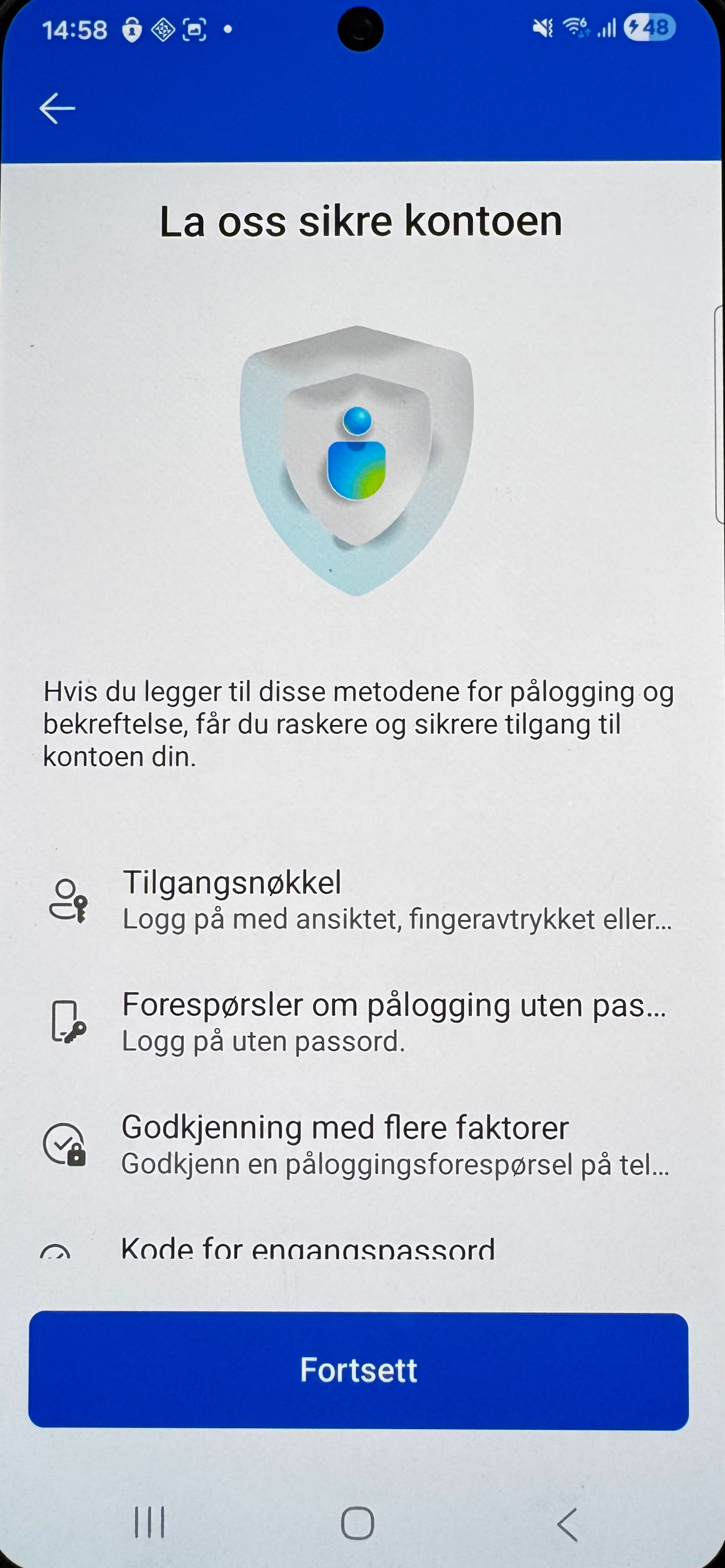 Denne veiledningen viser de videre stegene som skal utføres på Android-telefonen ved oppsett av CheckID. Skjermbildene kan avvike noe da det er litt avhengig av hvilke inntillinger du har på telefonen fra før og om du hadde Microsoft Authenticator appen installert.