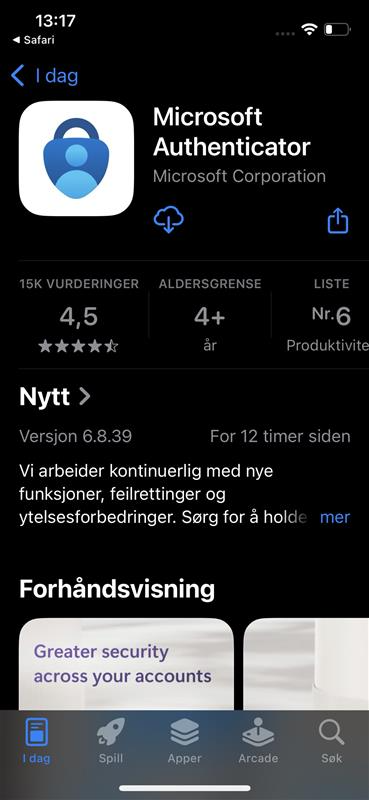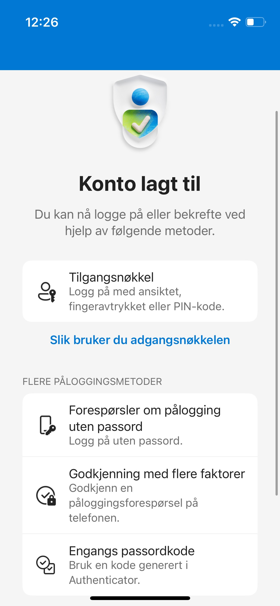 Denne veiledningen viser de videre stegene som skal utføres på iPhone ved oppsett av CheckID. Skjermbildene kan avvike noe da det er litt avhengig av hvilke inntillinger du har på telefonen fra før og om du hadde Microsoft Authenticator appen installert.
